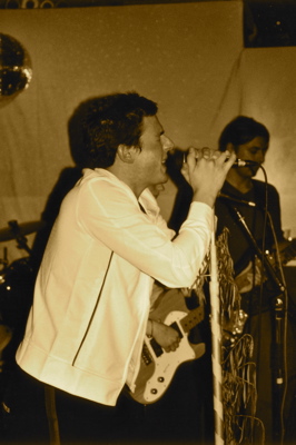Blöch mit Mik-Ständer und Grünpflanze. Sie hat den Abend allerdings nicht überlebt...